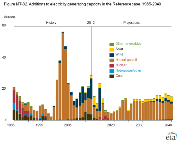 In the EIA's Market Trends of Electricity Demand, found in the 2014 Annual Energy Outlook (AOE), future capacity projections were made based on economic expectations. This excluded government subsidies, but included existing environmental legislation already on the books.