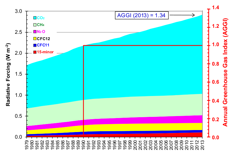 According to NOAA's Annual Greenhouse Gas Index, carbon dioxide is still the number one contributor to radiative forcing.