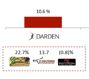 Red Lobster has been the weakest link for a decade falling 0.8% in same-store sales. Credit: Darden Restaurants