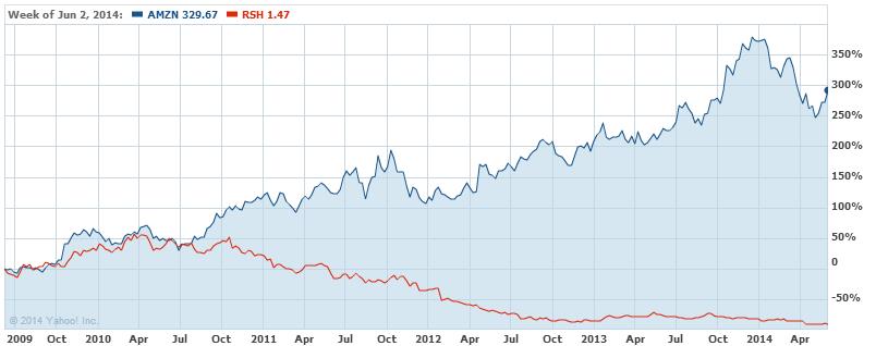 Amazon has been one of many retail companies to significantly outperform RadioShack.
