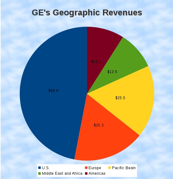 The U.S. market is key, of course, representing 47% of GE's sales in 2013. But that still leaves 53% coming from abroad.