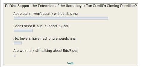 While the tax credit has been expired since 2010, there was overwhelming support among HSH.com readers to extend the deadline. Here is the results from a poll we ran on blog.HSH.com back in 2010: