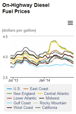 While gas prices inched higher, diesel prices dipped lower in the most recent week, with a $0.010 decline over the past week to $3.882 per gallon. This latest price tag puts diesel $0.041 per gallon above the same time last year. The East Coast enjoyed an oversized $0.022 decline, while the Gulf Coast was the only region to see prices increase, a slight $0.001.