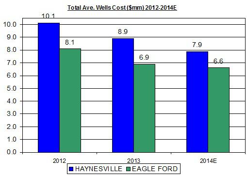 The chart above compares the average well cost (in millions) of the Eagle Ford shale and the Haynesville shale.