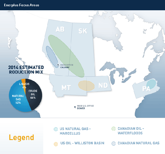 Enerplus Corporation is a corporation that owns a portfolio of natural gas and oil-producing properties that are located in four resource-rich areas in the United States and Canada.