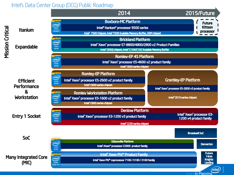 Intel's public Data Center Group road map. Source: Intel.