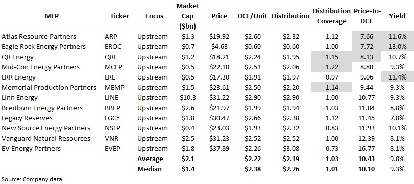 Master limited partnerships (MLPs) focused on upstream energy exploration and production usually pay the highest yields but must also constantly acquire new assets. While these partnerships have historically acquired assets from traditional E&P companies, we could soon see consolidation in the space and acquisitions of other partnerships. Look to distributable cash flow (DCF) and coverage ratios for value in the major players and potential accretive value as a takeover target.