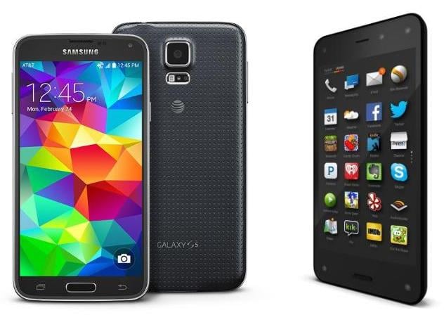 The Samsung Galaxy S5 has a new challenger in Amazon's Fire Phone. Credits: Amazon.com, Samsung