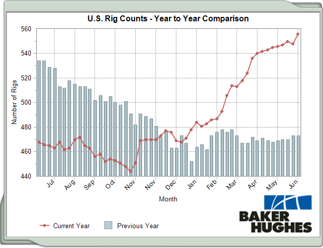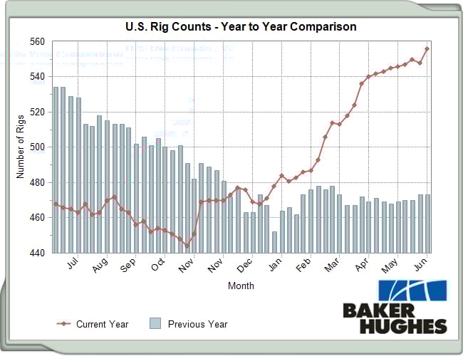 The vertical-to-horizontal rig switch in the Permian Basin is accelerating faster than expected, with the overall domestic rig count on pace to be higher than forecast this year. The chart below supplied by Baker Hughes illustrates the increased activity within the Permian Basin compared to last year.