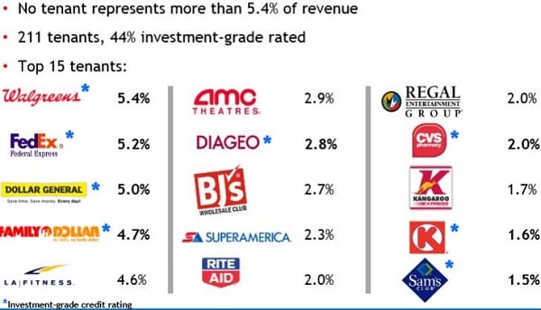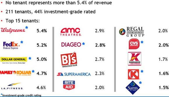 The National Retail portfolio is made up of over 350 tenants, primarily smaller properties such as convenience stores, restaurants, bank branches and gas stations.