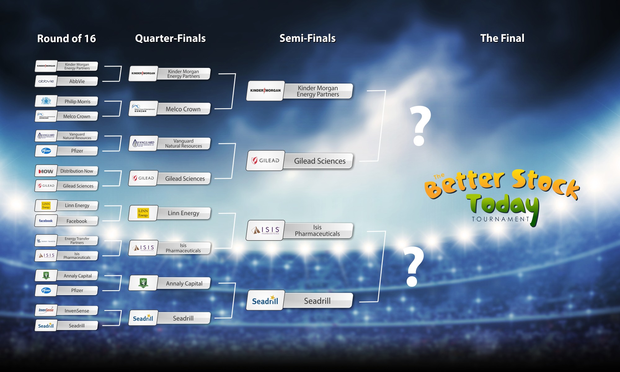 Today it's the Semi-Final stage, and Gilead takes on Kinder Morgan Partners in our search for the better stock.