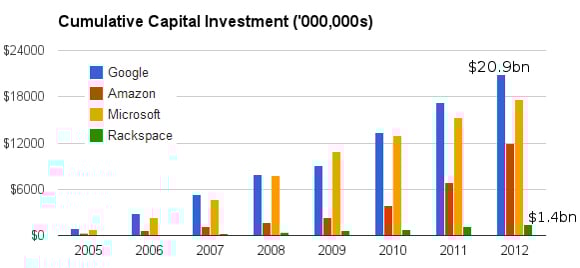 The cloud space is exploding. However, because of its amazing growth prospects, it is quickly becoming an extremely competitive space, where Internet giants such as Amazon.com and Google compete against traditional IT players like IBM for a piece of the market. All of these players have invested billions of dollars in infrastructure to improve their competitiveness.