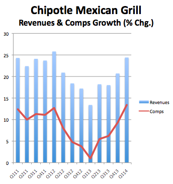 Zoe's Kitchen has long had catering as an integral part of its business, and it represented 17% of company revenue in 2013. Although it enjoyed strong growth during its period as a privately held company, Zoe's may be feeling the effects of fast-casual fatigue. While revenue continues to climb as it adds new restaurants, the rate of growth in same-store sales, an important retail metric because it measures organic growth rather than growth achieved through adding more restaurants, is flagging.