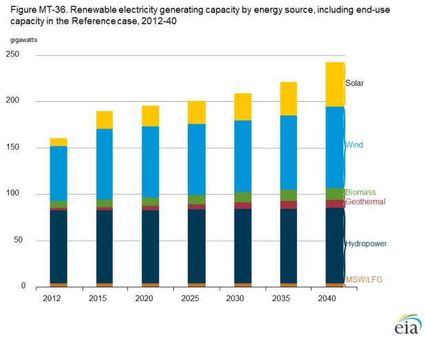 Part of the reason is because SolarCity's installations will live on if SolarCity itself goes belly up. This means that when looking at these securities, SolarCity's red ink doesn't play a big role. Even SolarCity itself is a more interesting option than Tesla Motors, though. First and foremost, solar is no longer a niche—it's a rapidly expanding alternative to carbon-based power. That growth still has a long way to run, with the U.S. Energy Information Administration (EIA) suggesting that it will be among the fastest-growing areas of the renewable market.