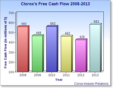 Clorox has become one of the most efficient companies in the generation of free cash flow and it has been able to build on this by reducing expenses and choosing how to spend its capital very wisely. Here's a chart of the total free cash flow the company generated from 2008-2013: