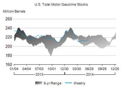 Gasoline inventories expanded 0.7 million barrels (0.3%) after growing 0.8 million barrels the week before. Demand for motor gasoline over the last four-week period is up a seasonally adjusted 1.7%. In the last year, supplies have fallen 4.6%.