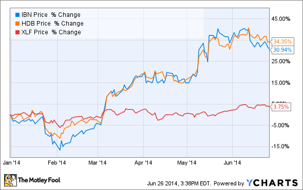 With both stocks already up over 30% year to date, HDFC Bank and ICICI Bank certainly seem to be beneficiaries of the boost that Modi's election provided to the Sensex. However, investors also had plenty of fundamental reasons to buy these stocks in the first half of 2014.