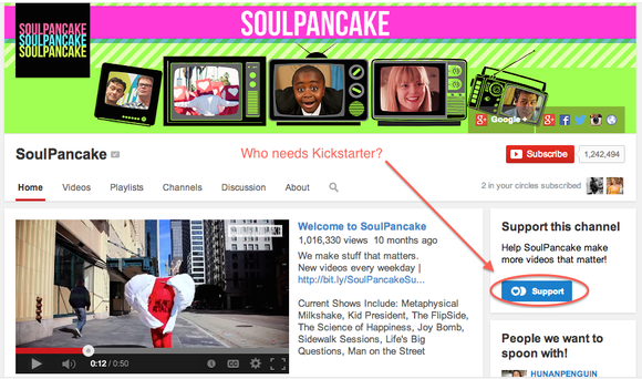 Remember when the popular YouTube show TableTop took to Indiegogo to raise funds for its next season? At the time, Google didn't have a cohesive strategy for backing ongoing series or their parent channels. Adding a "support" button gives YouTube's best fewer reasons to go elsewhere.