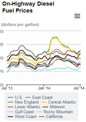 While gas prices remained unchanged, diesel prices squeaked up $0.001 over the past week to $3.920 per gallon. This latest price tag puts diesel $0.103 per gallon above the same time last year. The Midwest managed a $0.006 week-to-week decline, while the West Coast experienced the largest diesel increase (+$0.020).