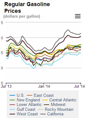 The national average price for regular gasoline clocked in at $3.704 per gallon Monday, the exact same as a week ago. However, compared to this time last year, gas prices have increased a steep $0.208. While the national average didn't budge from last week, regions did see some volatility. The Midwest saw the largest per-gallon decline ($0.022), while West Coast prices added on $0.025 per gallon.