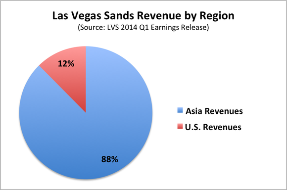 Las Vegas Sands already gets 88% of its revenue from Asia, and if Adelson can help it, that number will only go up. Source: LVS 2014 Q1 Earnings