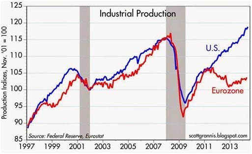 Josh Brown shows the divergence between the United States and Europe: