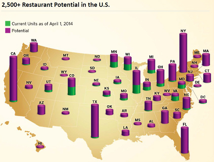 The long-term potential for Noodles & Company is ambitious in the U.S. Source: Noodles & Company.