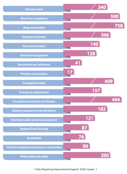The above list comes from Samsung's own on-site surveys of 200 Chinese suppliers. While the results of the survey were only reported with these numbers and no specifics, Samsung also published findings from a third-party audit, which goes into greater detail.