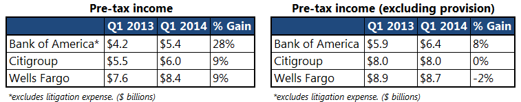 And as you can see, while the bottom line results improved significantly at these banks, in the case of Citigroup and Wells Fargo, the gains were entirely the result of a reduction in this one line item: