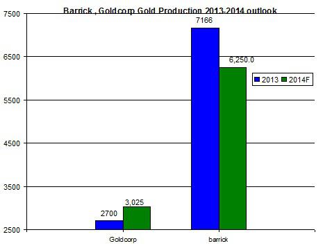 Due to these developments, Goldcorp's output is projected to be nearly half of Barrick Gold's production quota in 2014. Back in 2013, it was only a third.
