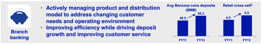 While there were some broader benefits from changing interest rates, these increased relationships helped its branch banking business more than double its net income, from $34 million in the first quarter of 2013 to $80 million in the first quarter of this year.