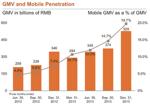 Mobile GMV remains a growth area for Alibaba. The company reported $37 billion in mobile GMV last year, which accounted for about 15% of overall GMV. Compare those figures to eBay's mobile GMV of $22 billion-or 40% of total GMV. Alibaba still has room to gain more mobile users, though the fact that Alibaba accounted for over 72% of total mobile GMV in China means that the growth will likely come from other regions.