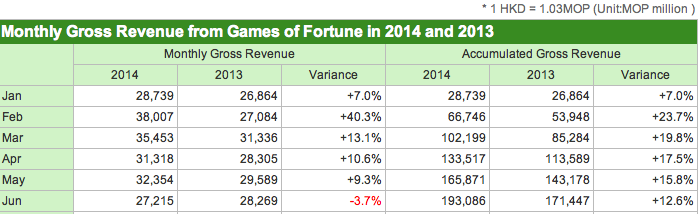 According to analysts, the drop experienced by the casino industry last month was driven by gamblers electing to wager on the World Cup being held in Brazil. With this major event in mind, analysts anticipated Macau's gaming revenue to decline anywhere from 2% to 6%, so actual results came in a bit on the lower end of the distribution.