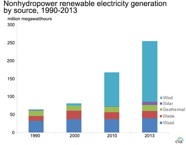 Furthermore, the U.S. Energy Information Administration's (EIA) reports that the U.S nonhydropower renewable generation capacity is growing rapidly, with wind producing the lion's share of the power.