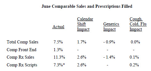 After reporting sales results for the month of June on July 3, shares of Walgreen (WAG +0.00%) inched up 1% to close at $73.98. Despite the fact that management delivered strong metrics for the month, the modest rise in share price might have some investors thinking that the company's stock is fairly valued. Moving forward, does Walgreen have what it takes to prove Mr. Market wrong, or would it be better to take your money to Rite Aid (RAD +0.00%) or CVS Caremark (CVS 0.93%) instead?