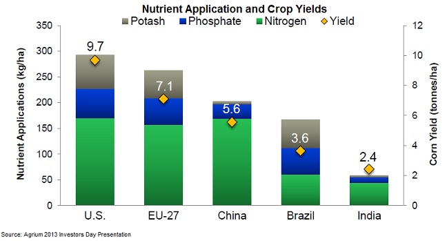 Agrium Incorporated (NYSE: AGU) is the largest nutrient retailer in North America and has 1,400 facilities in seven countries. Beyond its retailing strength, the company is also a major international wholesaler with sales in North & South America and in Europe. Agrium is the fourth largest producer of nitrogen in the world and the third largest producer of potash in North America. http://www.agrium.com/includes/Investor_Day_2013_-_Consolidated_Presentations_Final.pdf