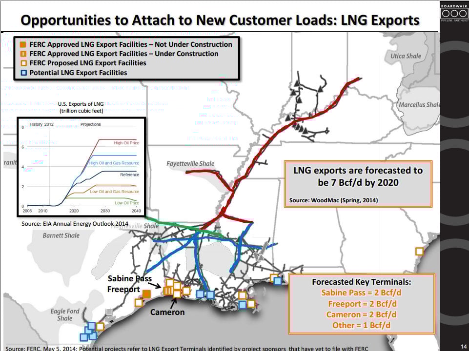 2014 has been a rough year for investors in Boardwalk Pipelines Partners. However, its future could be much brighter as its pipelines are perfectly positioned to make it a key natural gas supplier to LNG export facilities from companies like Cheniere Energy Partners and Energy Transfer Partners. That's important upside to a company that hasn't had much of it this year.