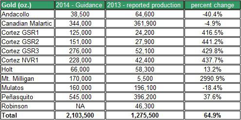 Royal Gold expects to sharply increase its attributed production of gold and silver this year. The table below summarizes the expected attributed production from Royal Gold's royalty and streaming agreements in 2014 and the attributed output in 2013.