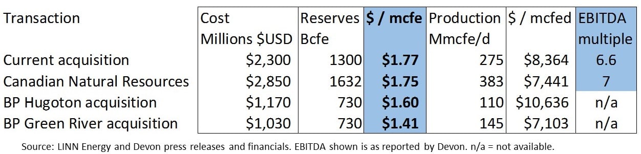 For acquire-and-exploit companies like LINN Energy, reserve costs on acquisition are critical. Reserves are inventory, and inventory control is the name of the game. The easiest way to assess the deal is simply to compare it to prior deals. Comparison shopping can tell you a lot fairly quickly.