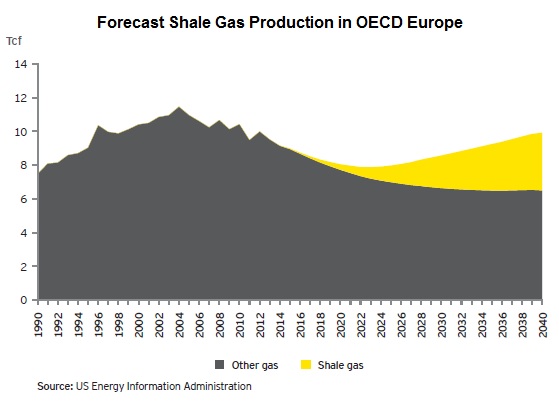 Even on current exploration efforts, the EIA sees shale gas as a significant part of OECD Europe production over the coming decades. This forecast could prove conservative on the effort of a few key players in the space.