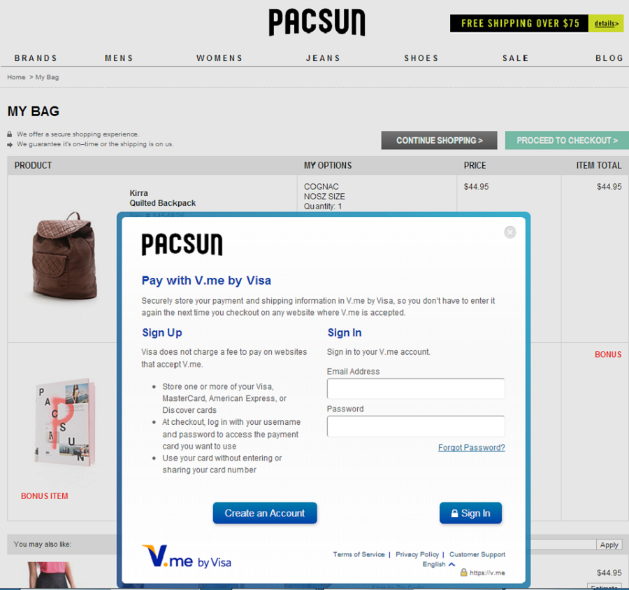 "We look at everything through the lens of the customer and continue to prioritize security, privacy, and fraud protection above all else," said Bank of America's online and mobile solutions executive, David Godsman, when the partnership was announced. "We believe our customers shouldn't have to forgo security for convenience when using a digital wallet. V.me offers customers a greatly simplified and secure checkout process when shopping online without sharing their financial information."