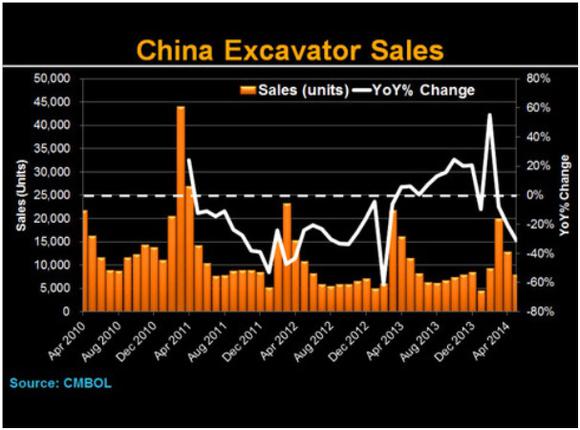 Cat has a stronger hold in excavators in the mainland's construction equipment market compared to the loader market, which is dominated by local players. Bloomberg data shows that excavator sales were down 9.5% through May, and demand could be further affected over the coming months as local governments lower their spending. That's definitely not pleasant news for the equipment maker.