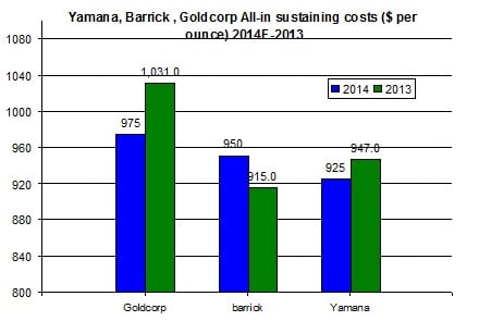 Source: Yamana, Goldcorp, and Barrick Gold.