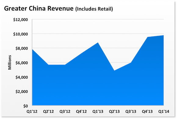 CCTV is broadcast in Hong Kong, but if the smear campaign caused the drop in sales, then the weakness would have been broad-based throughout Greater China and not isolated to Hong Kong. Apple's Greater China sales have since recovered and then some, with last quarter hitting a fresh all-time revenue record of nearly $10 billion.