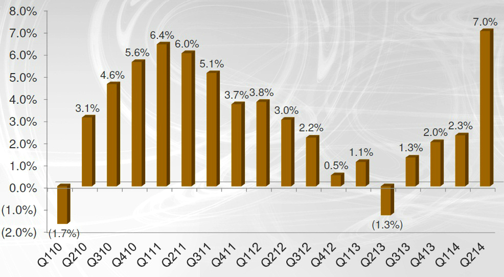 The big positives came with same-store sales growth. While Jack in the Box improved on its 0.1% growth in the year-ago quarter with 0.7% growth, Qdoba saw same-store sales soar 7% for the quarter, a vast improvement over its negative 1.7% growth in last year's second quarter.
