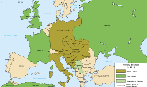 European alliances, 1914. Wikimedia Commons.