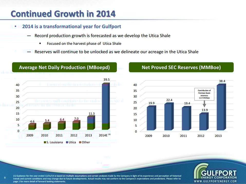 As the charts on that slide demonstrate, Gulfport Energy's production rate has surged higher thanks to its investments to drill the Utica Shale. Meanwhile, those wells have added substantial proved reserves onto the company's books. With a substantial inventory of future well locations Gulfport Energy will continue to see its position in the Utica Shale fuel value for the company.