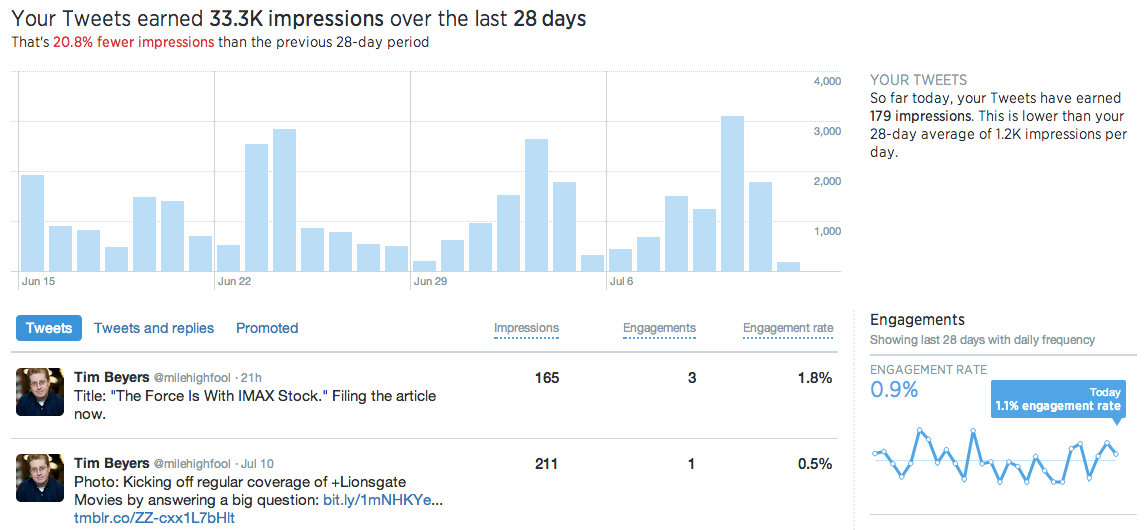 My Twitter analytics for @milehighfool. Credit: Twitter.