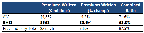 Earlier this year, we learned Berkshire Hathaway, in total, saw its total excess and surplus insurance premiums written -- which includes a few of its other businesses -- jump by $150 million, or nearly 40% in 2013, to stand at $561 million. The overall industry only saw premiums increase by 7.6%, and industry leader AIG (AIG +0.18%) saw its premiums actually fall by 4.2%, to $4.8 billion.