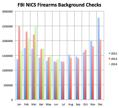 According to the FBI, while background checks don't necessarily translate one-to-one into gun sales, it's intuitive that someone going through the background check process will ultimately follow through if approved. In December 2012, 2.78 million background checks were processed, the most ever until that time, and it remains the apex today as well.